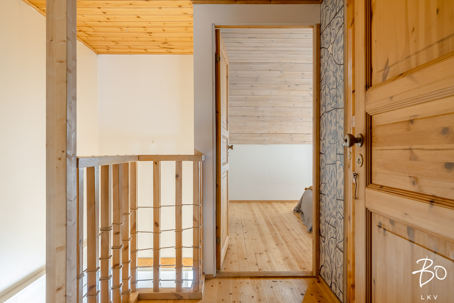 Löysimme Turusta lasikaiteita tekevän yrityksen, jolta teetettiin uudet kaiteet asennuksineen. Yläkerran kaiteet on kiinnitetty steel pro -systeemillä ja lasit on ekstarkirkastetut, jotta ne eivät taittaisi vihreään. Käsijohtimissa päädyttiin puisiin, sillä mielestämme ne sopivat talon henkeen alumiinisia paremmin.